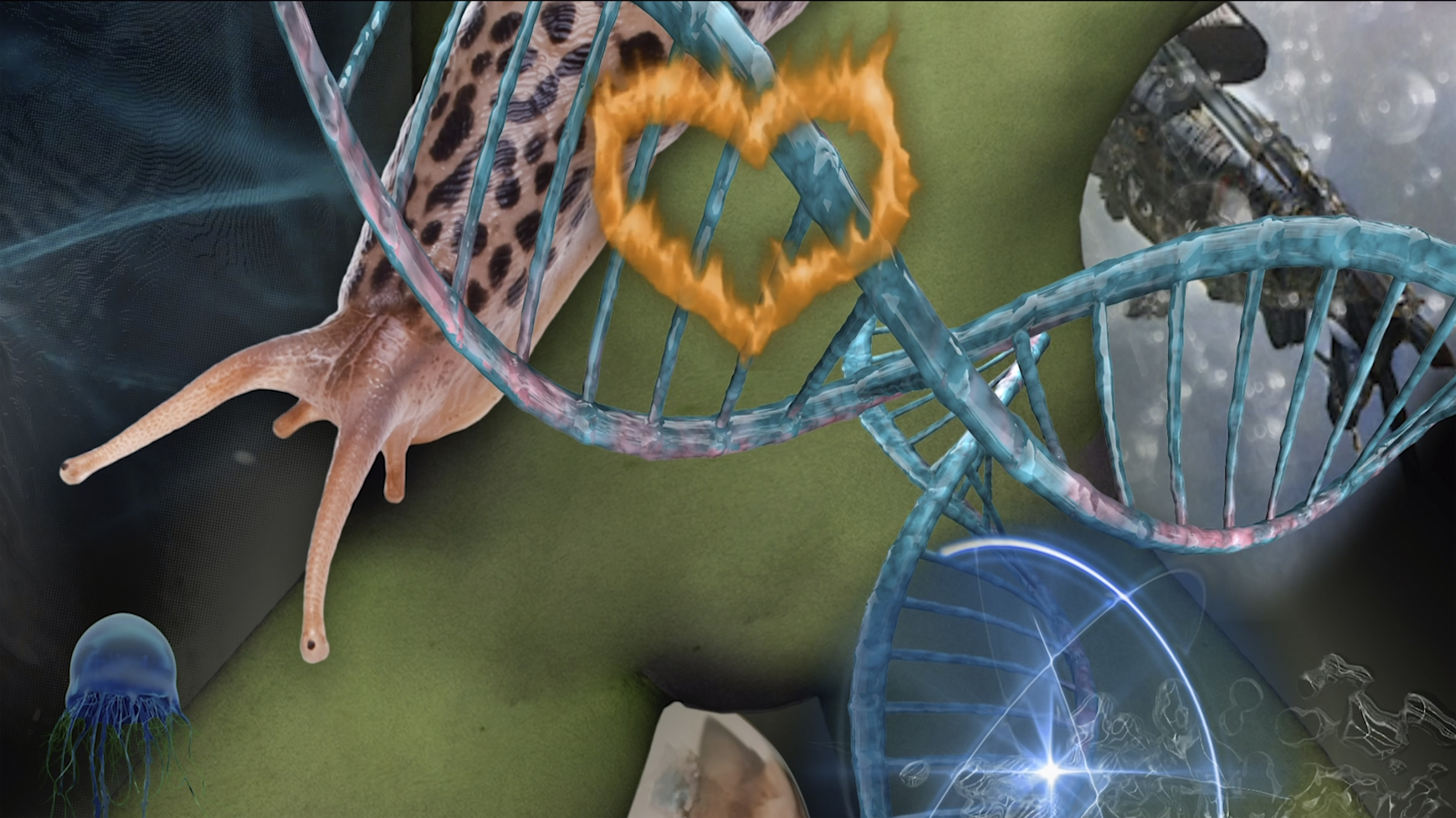 In CHIMERA, Kuzmich draws from this experience and explores the distance between fear and understanding. Snails, amongst other gynandromorphs, become starting points to examine the queerness of ecology and non-binary life in nature. In melding digital avatars, dark, reflective surfaces and sculptures of shifting materiality - Kuzmich examines the potential and instability within our notion of “human” as a species. Weaving technology with explorations of the natural world, Kuzmich wrestles with the systems of knowledge (biological and ecological) we use to build boundaries between fluid life forms. How can “we”, in symbiosis with technology, re-enter the category of nature? Found footage, video essay and sculpture are assembled into playful worlds that question our “scientific” knowledge. Here, conventional wisdom - with which we are dissected and established as separate life forms (dooming queer beings as unnatural) is contested. How can we function in such systems of alienation? Which cultures appear to counter nature: creating the simultaneous disasters of climate change and the gender binary? Sound Design by Leonard Prochazka Graphic Design by Winona Hudec Text with Lennart Horst Supported by Best Austrian Animation Festival Akademie der Bildenden Künste Wien Sehsaal